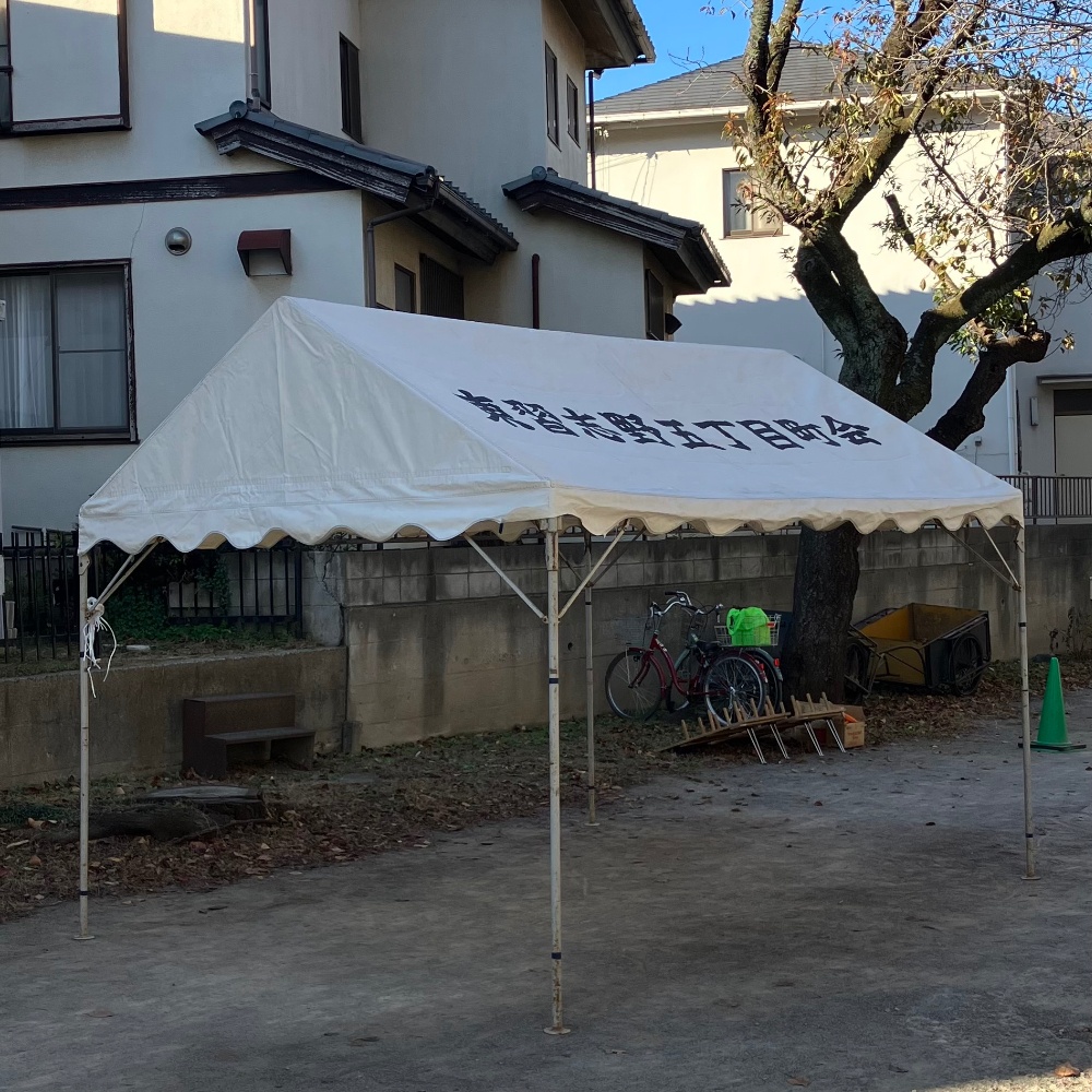令和7年4月にテントのクリーニングを行った「東習志野5丁目町会」様のテントです。とてもキレイに仕上がっています。